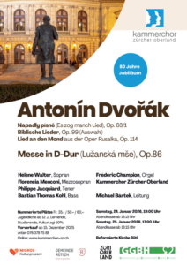 Ergänzt wird die Messe mit Werken von Antonin Dvořák: Napadly písně (Chor a capella), Biblische Lieder (für Sopransolo), Lied an den Mond aus «Rusalka».